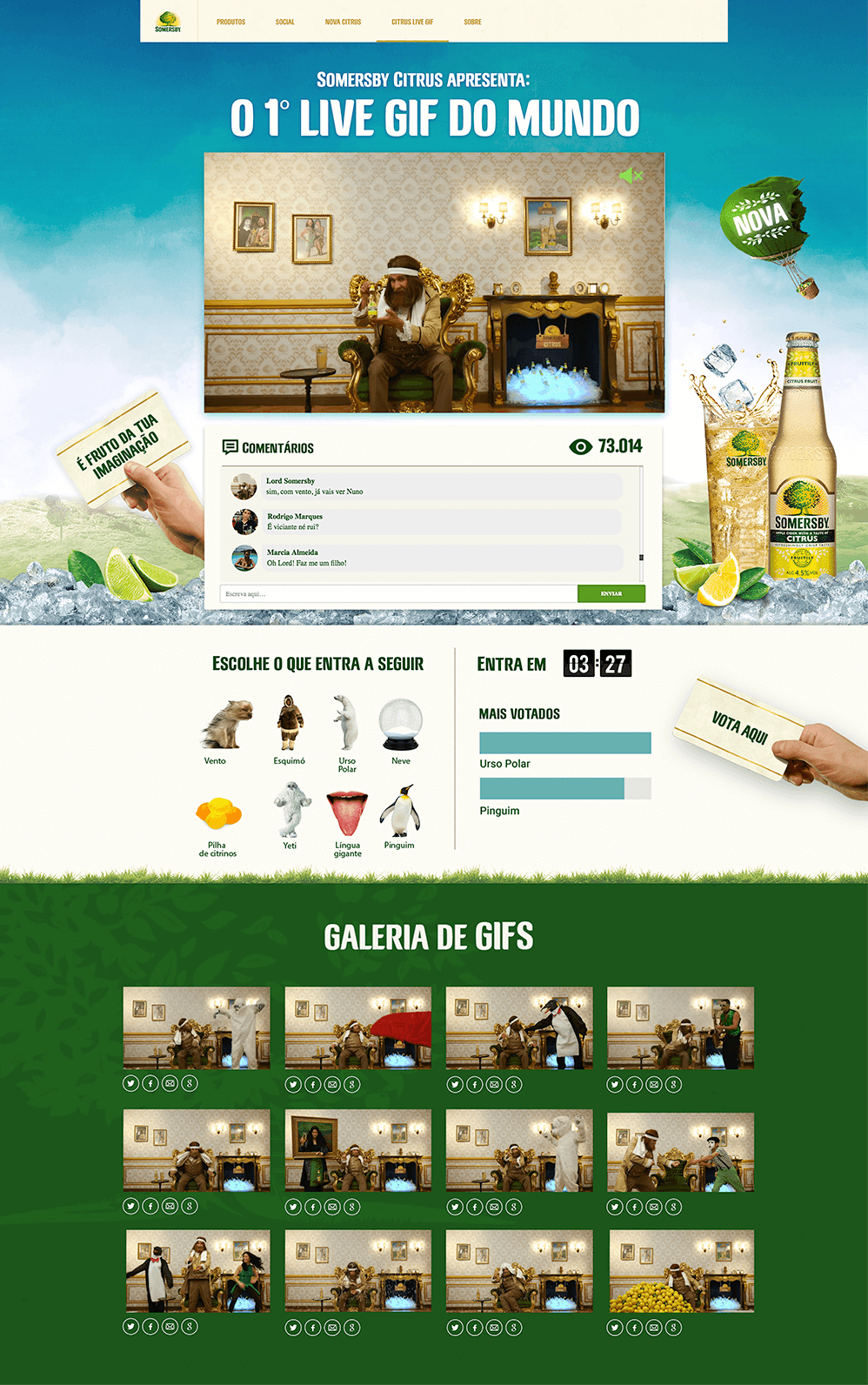 To make it more interesting and engaging, the Lord could be joined by several guests, that were put to vote on the platform. Every 7 minutes, the one that had the more votes would appear live. In addition to that, hundreds of actual gifs we being generated from previous actions, to be shared by the public on social networks. Even some celebrities made special appearances. A video that never stopped, and that no one could stop watching.