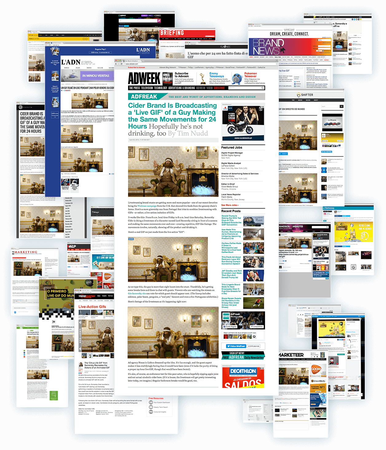 The First Live Gif in the World. A real time video, broadcasting for 24 hours. 24 of endless freshness, where everyone could watch Lord Somersby repeating the same movement (like a Gif), showing the bottle and drinking.