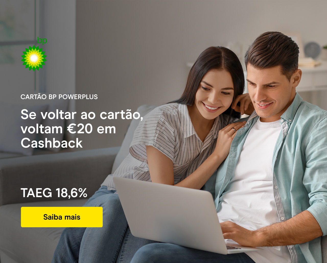 Cartão BP POWERPLUS: TAEG 18,6%. Exemplo para limite de crédito de €1.500; prazo 12 meses; TAN 18,100%.